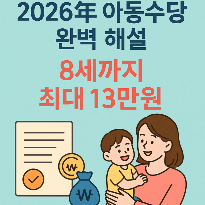 2026년부터 아동수당이 만 8세까지 확대되고 최대 13만 원까지 지급된다. 지역별 차등 지원, 상품권 선택 인센티브, 아이돌봄 서비스 확대로 복지가 대폭 강화됐다.