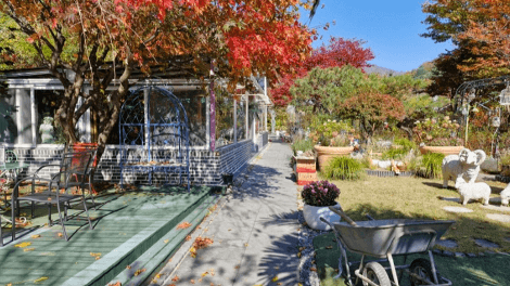 정원 중앙 햇빛 집중 라벤더, 장미, 억새 중심 포인트로 활용