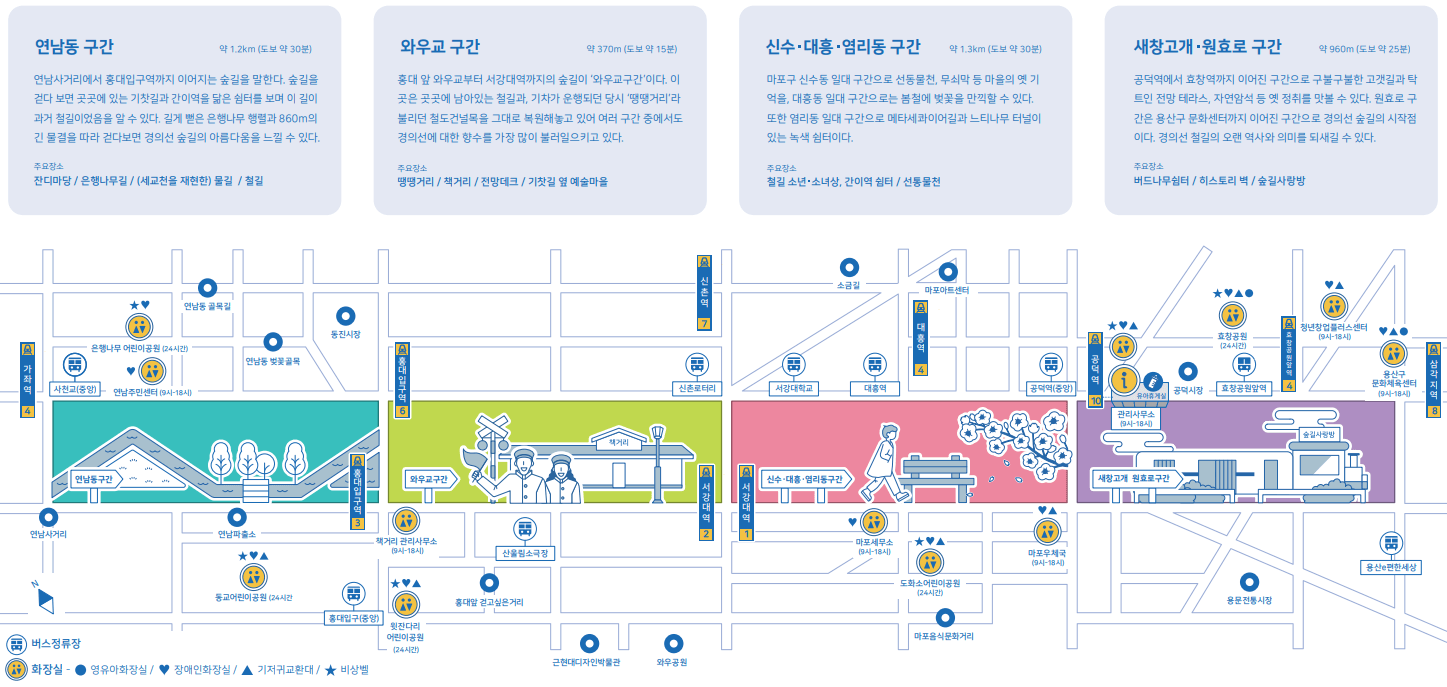 홍대입구역에서 가좌역까지 이어지는 경의선숲길걷기 좋은 평지형 산책길이에요.