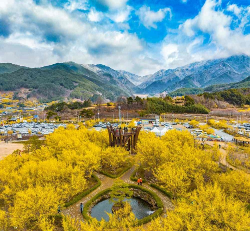 산수유 명소를 이야기할 때 가장 먼저 떠오르는 곳입니다. 지리산 자락에 자리한 구례 산수유마을은 3월이면 온 마을이 노란빛으로 뒤덮입니다.