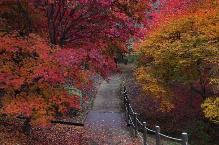 - 약 11만 그루에 이르는 단풍나무와 조경수가 색을 바꾸며 오색빛을 연출합니다.