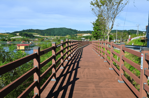 예당호 출렁다리(402m) → 문화광장 → 예당호 느린호수길(5.2km) →